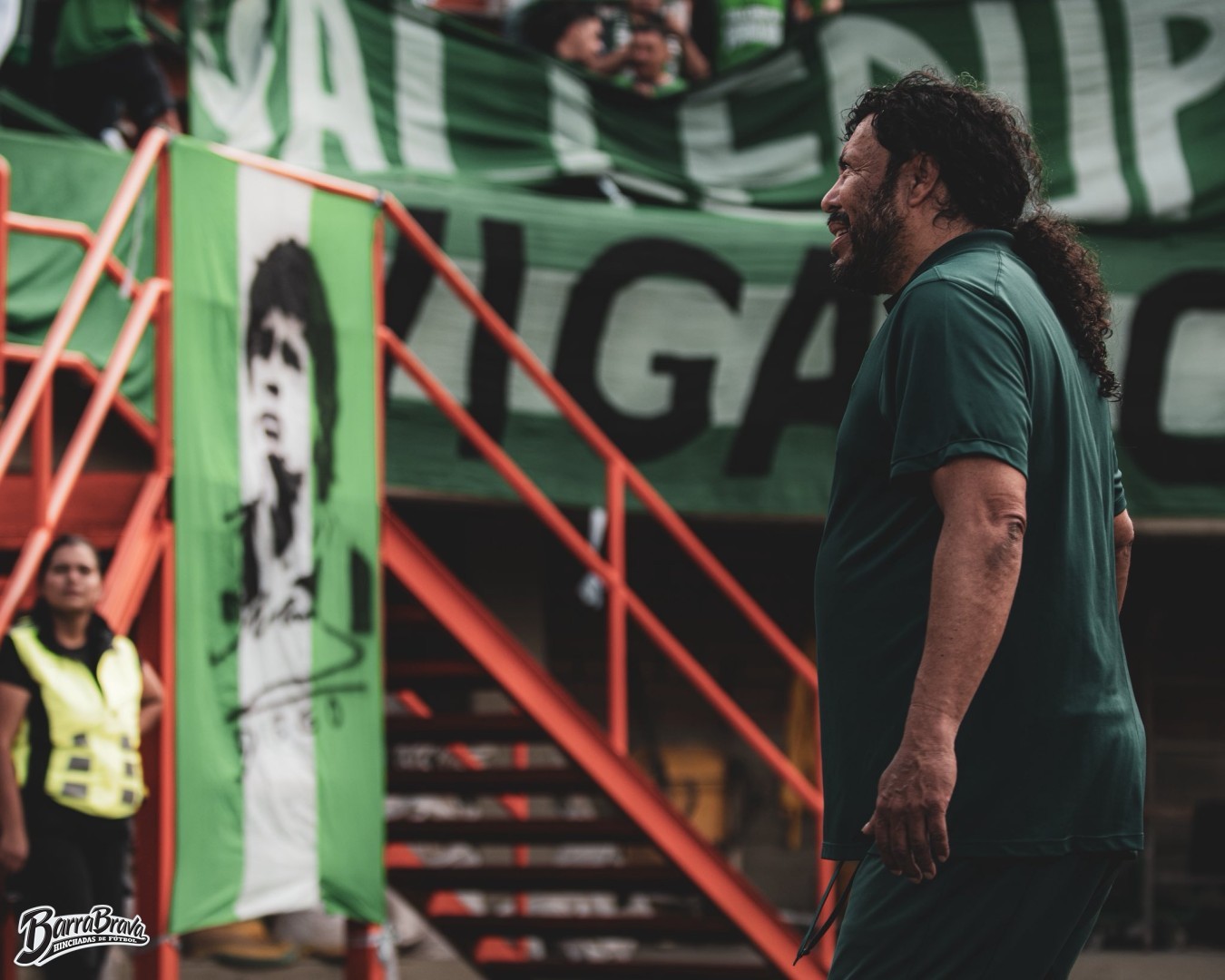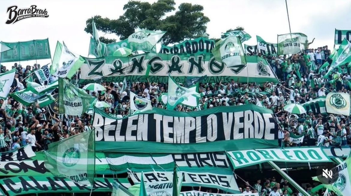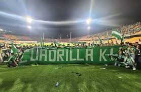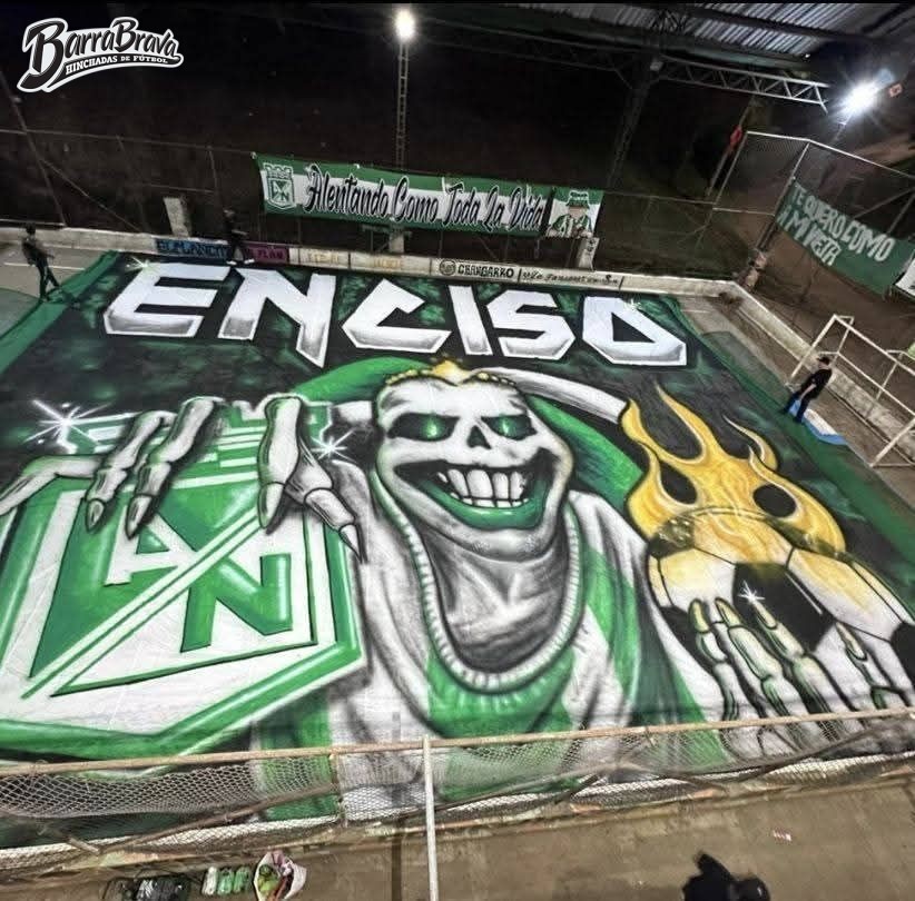 Trapos de la barra brava Los del Sur y hinchada del club de fútbol Atlético Nacional de Colombia