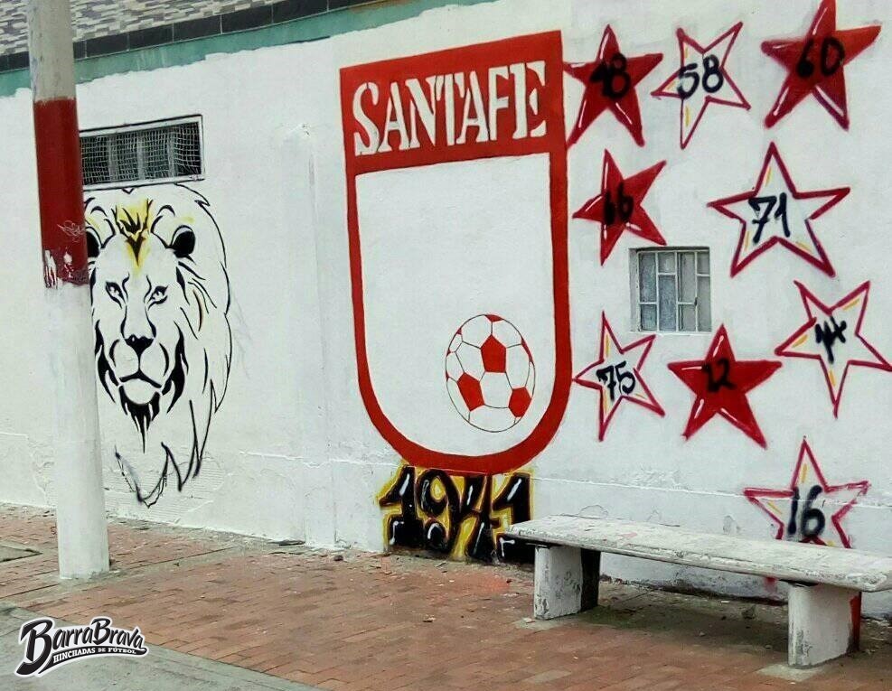 Murales - Graffitis recientes de la barra brava La Guardia Albi Roja Sur y hinchada del club de fútbol Independiente Santa Fe de Colombia