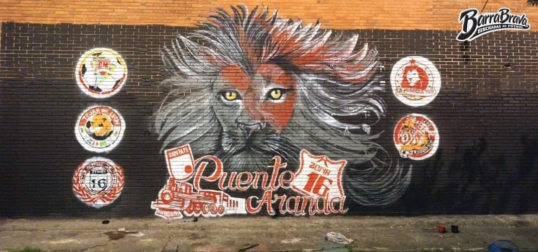 Murales - Graffitis de la barra brava La Guardia Albi Roja Sur y hinchada del club de fútbol Independiente Santa Fe de Colombia